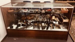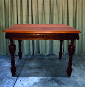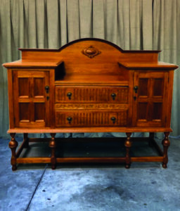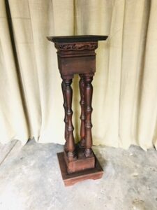 Artist/Content: Antique Carved Oak Armchair Gray Upholstery